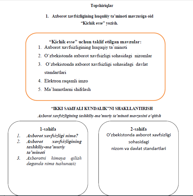 o Asosiy matn o‘qib chiqilsin o Quyida berilgan keys to‘plam topshiriqlari bajarilsin. o Bajarilgan keys to‘plam topshiriqlari izohlansin.