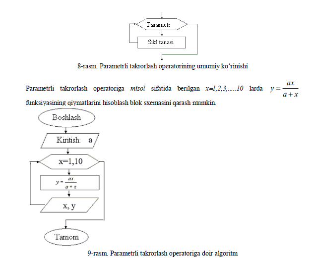 Blok sxemalarining takrorlanuvchi qismlarini, quyidagi parametrli takrorlash strukturasi ko‘rinishida ham ifodalash mumkin.