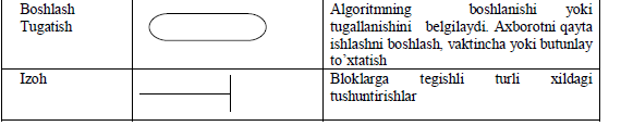 5.3-jadval. O`zgarmaslar chegaralari va mos tiplari.1. Algoritm deb nimaga aytiladi?
